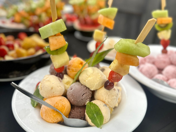 Het dessert... dat vinden we belangrijk bij Mariet! We maken er graag een kleurrijk en gevarieerd spektakel van met ijs, bavarois, vers fruit, slagroom, toppings en nog veel meer zoete verleidingen.